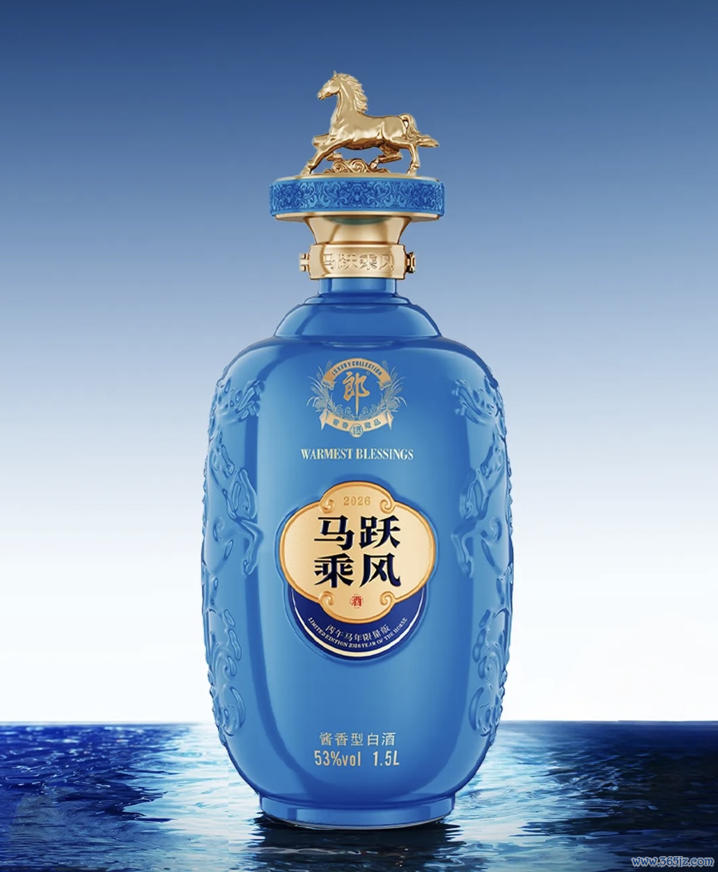 当作郎酒高端奢香藏品系列的小批量勾调、限量典藏之作,马跃乘风(丙午马年限量版)交融郎酒酿造匠心与传统生肖文化,以生肖马为主题,以新锐蓝色为主颜色,寓意奋进涌现、平坦大路。